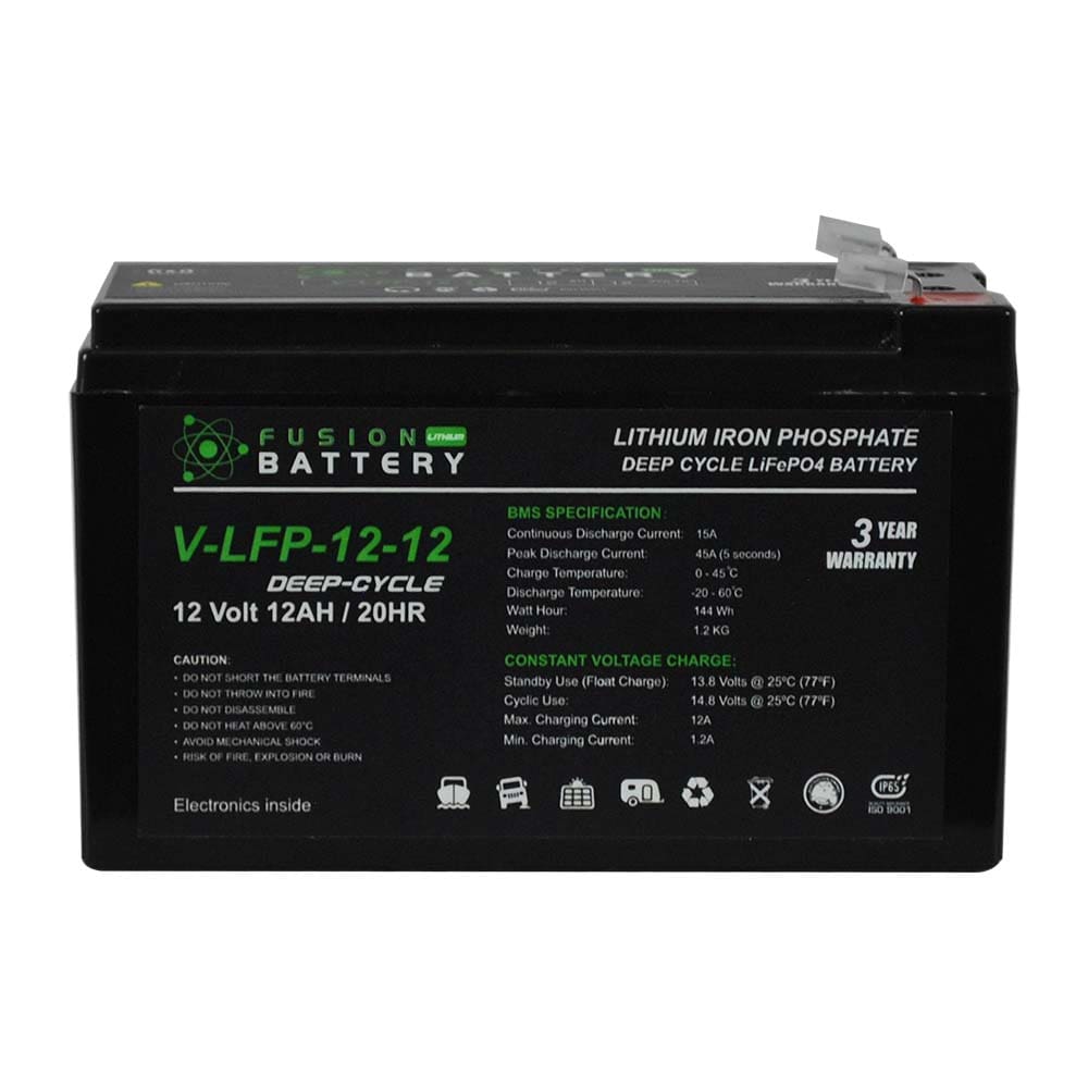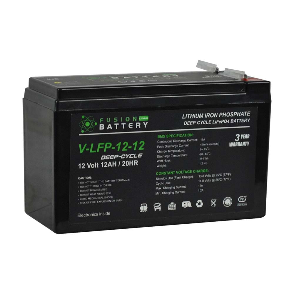 Fusion Lithium batteries deliver safe lithium phosphate energy storage solutions in standard lead-acid battery sizes for a wide variety of applications. They are designed as a direct drop-in replacement for similar-sized lead-acid batteries offering twice the run time and less than half the weight. Fusion Lithium Phosphate Batteries are extremely lightweight batteries designed for deep-cycle (cyclic) applications. They are completely dry batteries, making them spill-proof, and leak-proof.